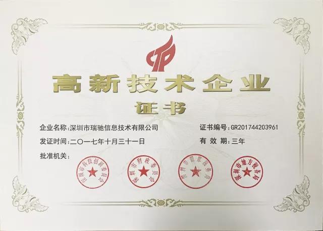 高新技術(shù)企業(yè)認定嚴苛,企業(yè)必須同時滿足知識產(chǎn)權(quán)、科技成果轉(zhuǎn)化能力、企業(yè)經(jīng)營成長性指標等條件。瑞馳通過嚴格審核,近日已成功獲取了由深圳市科技創(chuàng)新委員會、深圳市財政委員會、深圳市國家稅務(wù)局及深圳市地方稅務(wù)局聯(lián)合頒發(fā)的《高新技術(shù)企業(yè)證書》,正式晉升國家高新技術(shù)企業(yè)行列!