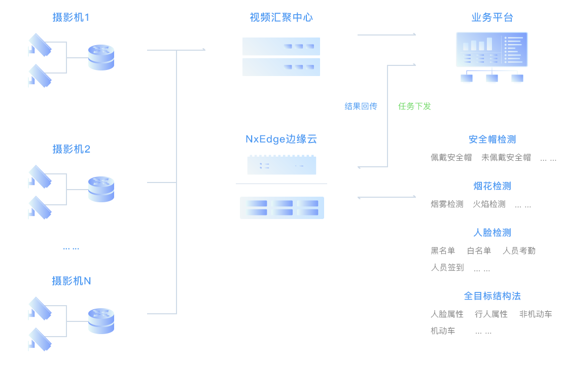 瑞馳給合作伙伴提供AI邊緣終端和邊緣服務(wù)器,給工地現(xiàn)場原有攝像頭賦能,可以對工地進出員工實現(xiàn)有效管控,并實現(xiàn)施工現(xiàn)場員工是否戴安全帽進行識別,對煙火場景自動檢測告警,提高監(jiān)管效率,更大保障工地安全。
