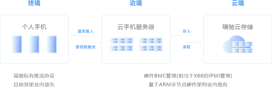 瑞馳云手機通過自研的陣列式服務器在云端建立的安全云手機系統(tǒng),用戶使用自己終端通過網(wǎng)絡進入云手機后,相當擁有了一部全新的手機,不占用本地個人終端資源,云手機安全推流到個人終端顯示業(yè)務,數(shù)據(jù)不落地,不留痕。